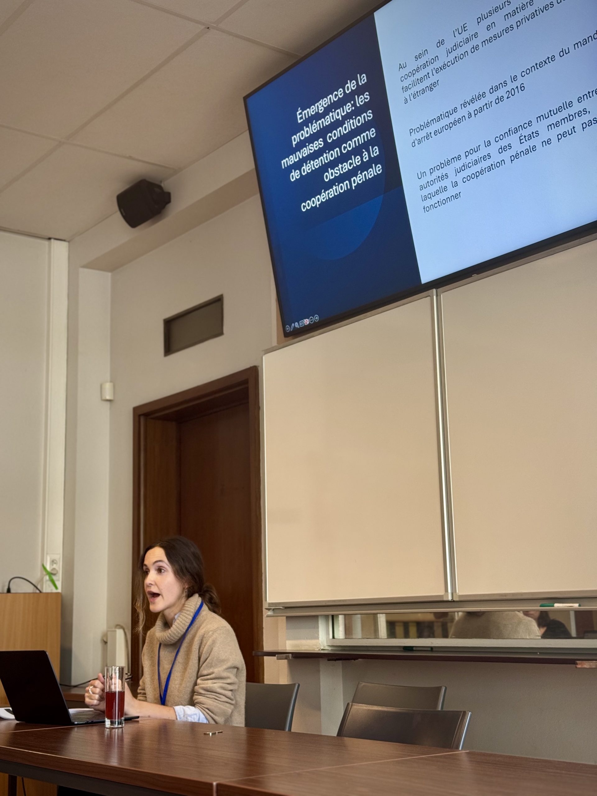Les travaux reprennent à 13h45 avec l’intervention de Julia Burchett, docteure en droit et chercheuse post-doctorante au Centre de droit européen de l’ULB, sur la protection des droits des détenus et la coopération pénale européenne. Une session de questions-réponses suit de 14h15 à 14h30, avant une pause-café jusqu’à 14h50.